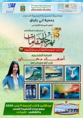 في إطار الدورة الخامسة عشرة من مهرجان "مقامات"، الذي تنظمه جمعية أبي رقراق تخليداً للذكرى الخمسين للمسيرة الخضراء المظفرة، تُطلق الفنانة التشكيلية الصاعدة أسماء دحان أول معرض فردي لها، وذلك في الفترة الممتدة من الإثنين 3 نونبر إلى الجمعة 7 نونبر 2025 بـ مركز التنشيط الفني والثقافي "تابريكت" بمدينة سلا.