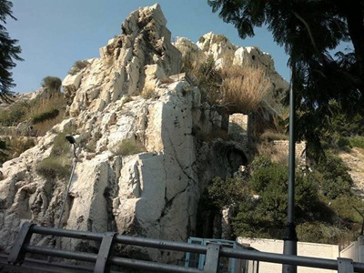 وتحتَ الصخرة كتب حرفان باللغة الإنجليزية .