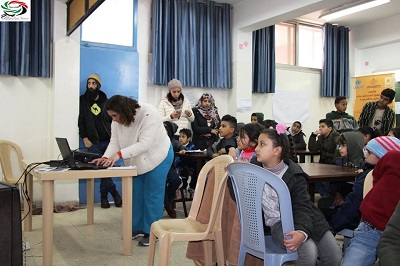 من بوابة المدرسة في خلدا كنا نتجه مع الطلبة إلى مخيم الحسين، مديرة المدرسة السيدة حنين الأشقر والمشرفات التربويات جاكلين سمير وهدى أحمد وسلام قنو والفنانة التشكيلية ربا أبو دلو، حيث استقبلتنا السيدة حنان الرويدي مديرة مركز البرامج النسائية التابع لوكالة الغوث (أونروا) وبعض من العاملات بالمركز ومجموعة من المتطوعين الشباب والشابات من جمعية نماء للتنمية الثقافة للمشاركة في البرنامج الثقافي والفني المقرر، منهم راكان الحياصات ورزان عبد الله وشروق خليل وإيمان عصام وأحمد فتح الله ومؤمن أبو شريفة، وهذه الجمعية تأسست عام 2005 لتحسين وضع النساء والشباب والأطفال في مجتمعاتهم، وبحضور مجموعة كبيرة من الأطفال الأيتام وذوي الاحتياجات الاجتماعية والخاصة، ليبدأ البرنامج بعد توزيع الطلاب على المقاعد الملتفة حول المناضد بحيث ضمت كل منضدة أطفال الفينيق مع أطفال المخيم.