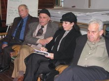 – (حنّا أبو حنّ) قال: لا أودّ أن أعرّي الأديب والشاعر عن أي ارتباط فكري وسياسي يتجاوز الأدب، لأنه إنسان وله مشاعر مثل الآخرين، وهناك ضرورة لتنظيم معيّن، قد ينتمي أديبٌ ما إلى حزبٍ، شريطةَ أن يحافظ على استقلاليّته في الدفاع عن رأيه فلا يخضع، وبكل وسعه يسعى لإمكانية التقاء الجهود السياسية التي تجمع على الحد الأدنى، لأننا كأقلية قومية في هذا البلد، لا يمكننا أن ننجح إن بقينا ممَزَّقين، ومن حقنا الدفاع عن كياننا وحقوقنا وصياغة هوية كريمة لنا، ونحن على استعداد أن نلتقي كل من ينادي بها، ولا نستطيع تعرية أنفسنا من التنظيم، فنحن نناقش هنا وهناك كأدباء، ونسعى إلى تنضيد صفوف المنادين بالوطنية، فليس كل العاملين بالسياسة مخادعين، ونحن نحتاج إلى لقاء يجمع من مختلف التيارات، لكن أن نلتقي في نصرة الحق! وتابع مؤكّدا، روبرت فيسك يقول، ليس الطعام هو مشكلة الشعب الفلسطيني إنما العدالة، فالقضية تحتاج إلى موقف عادل، وهذا هو نضال الفلسطينيين، فلو وضعنا القضية في ميزان العدالة، لاستطعنا فتح أعين العالم على ما يدور، فالشعب الفلسطيني لا زال مشرّدا وملاحَقًا في كيانه، وله الحقّ في استقلاليته واستعادة طاقاته المبدَّدة، ولا ننسى أن ليس كلّ الأدباء إنسانيّين، فلو أن الإنسانيّة كانت متجوهرة في الأدباء اليهود، فسترى الحق وتُناصره، لكن ليس هناك موقف جذري من الحق والعدالة!