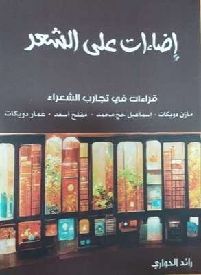 صدر مؤخراً عن دار الفاروق للثقافة والنشر كتاب "إضاءات على الشعر" للناقد رائد الحواري، وجاء الكتاب في (180) صفحة من القطع المتوسط، ويتناول قراءات في تجارب أربعة من شعراء محافظة نابلس، وهم: مازن دويكات، وإسماعيل حج محمد، ومفلح أسعد، وعمار دويكات، موزعة على أربعة فصول، تضمن بداية كل فصل سيرة ذاتية لكل شاعر من الشعراء محلّ الدراسة.