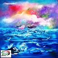 اللوحة الثالثة تمثل نمطاً آخر وأسلوباً مختلفاً عما سبق في الأسلوبين السابقين، فالبحر هو السمة المشتركة، وفيها تبتعد عن استخدام الكثافة اللونية البارزة، وتلجأ لاستخدام الألوان الزيتية المتمازجة من خلال الفرشاة، وفي هذه اللوحة نجد البحر بلونه الأزرق القوي مع حركة محدودة للأمواج توشحها باللون الأبيض، فتخلق الجمالية فيها، النوارس تحلق في بدايات وأفق اللوحة، قوارب تعتمد على التجديف، وسماء ملونة بألوان جميلة تمازج الألوان الحارة مع الألوان الباردة، فنجد ألوان الأحمر والبرتقالي والأصفر والأبيض، إضافة إلى الأخضر، تعكس نفسها على كتل الغيوم وتراكماتها بشكل ملفت للنظر، والقوارب سمة مشتركة في العديد من لوحاتها التي وجد بها البحر ومنها لوحة متميزة لإمارة دبي، وفي عدة لوحات وفي اللوحة التي تحدثت فيها فيما سبق والتي جردت بها الأمكنة، وواضح في العديد من لوحاتها تأثرها بمشاهد البحر، فالأردن موطنها يفتقد للبحر إلا خليج العقبة الصغير في أقصى جنوب الأردن والبحر الميت في الأغوار وهو ليس أكثر من بحيرة بمساحة محدوة، ويندر أن نجد إنسانا من الأردن يلتقي البحر بدون أن يترك ذلك أثراً في روحه، سواء كان مبدعاً أو إنساناً عادياً.
