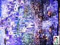 بينما في اللوحة الثانية نجد أن المكان هو المكوّن الأساس فيها، ونجدها تميل لاستخدام اللون الأزرق المتمازج بالأبيض في تدرجاته المختلفة، وحتى اللون البني في أسفل اللوحة بجوار المجرى المائي تمازج مع الأزرق والأبيض، ولم يظهر في اللوحة ألوان أخرى سوى الأخضر لبعض الأشجار بين وفي أسفل الأبنية، وأيضاً تمازجت مع الأزرق والأبيض إلا من بعض التوشيحات لألوان تميل للأحمر والبرتقالي، فأعطت جمالية خاصة للوحة، وفي هذه اللوحة نجدها تلجأ للأسلوب الحلزوني من خلال بؤرة في منتصف اللوحة بلون أشد بياضاً للبيت في منتصف اللوحة تماماً، ومنها تنطلق بشكل حلزوني كما الدوامة للأطراف حيث تقل فعالية الألوان وتأثيرها الإشعاعي المنير، وتصبح أطراف اللوحة أكثر قتامة باللون لكن بتمازج لوني متميز مع انعكاسات النور وتبايناته بين الظل والانعكاس، فنجد البيوت تتراكم وكأنها تصعد تلة تقف بالقرب من المجرى المائي مع مساحة للشاطئ والأشجار بأسفلها لتبدأ مقدمة اللوحة بالمجرى المائي وبعض الصخور فيه، ويلاحظ في معظم اللوحات الخاصة بالمكان تقارب الأسلوب المستخدم بالرسم والألوان، وإن لجأت في بعض اللوحات إلى تجريد المكان والبيوتات مع المحافظة على المدرسة الانطباعية من خلال الطبيعة المحيطة بالمكان أو في مقدمة اللوحة، مع التركيز على االلون بألوان مختلفة للسماء من خلال ألوان مختلفة تتمازج كأنها ينابيع متفجرة، وفي بعض الحالات تمازج الألوان للسماء بألوان قوية للغيوم كأنها حبلى بالمطر بينما قاعدة اللوحات، وهي في الغالب مسطحات مائية تكون هادئة، ويلاحظ في لوحات المكان في أعمال الفنانة أنها، في غالب أعمالها، تستخدم القرميد الأحمر للأسطح، علماً أن طفولتها في مدينة جرش وشبابها في مدينة السلط، إلا أن هذا النمط من البناء، وإن وجد في بعض البيوتات التراثية وبنسبة قليلة في جرش ونسبة أعلى في السلط، إلا أنه ليس السمة الغالبة على البناء، ما يشير أن الفنانة قد تكون تأثرت بالطبيعة وجمالياتها في المدينتين وبخاصة في جرش، لكنها بالتأكيد تأثرت بأنماط بناء أخرى في تجوالها وسفرها، وأعتقد أنها تأثرت بأنماط البناء التراثية في رام الله/ فلسطين، فحين درست في بداية حياتها في معهد المعلمات هناك، كانت غالبية أبنية رام الله تعتمد على القرميد الأحمر الهرمي لتغطية الأسطح، إضافة إلى تكرر وجود المجاري والمسطحات المائية أمام الأمكنة وهذا قليل في المدينتين إن لم يكن معدوماً.