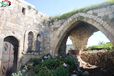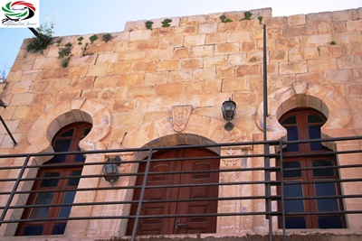 من الساحة المبلطة بجوار الديوان ومن جانب مقر الجمعية كنا نصعد حجر حجري تراثي للصعود للعلية التي بناها كما المبنى كله المرحوم الحاج شاكر العوض، برفقة صديقي ومنسق ومرافق جولاتي في منطقتي طولكرم وقلقيلية وغيرها من مناطق صديقي الأستاذ سامح سمحة ومع مضيفنا الأستاذ زيد عوض "الصيفي" أبو محمود ، حيث توقفت على اعلى الدرجات لالتقاط صور للمحيط من هذا المرتفع، ومن ثم بدأت تأمل الجدران الخارجية والنقوش وعملية الترميم التي قامت بتنظيف الحجارة الخارجية باحتراف، والعلية أو العليات بشكل عام وكما أشرت في مقالاتي السابقة عن بلدات أخرى كان يبنيها عادة الأشخاص ذو الوضع الاجتماعي والمكانة في بلداتهم، وكانت تستخدم للضيوف والزوار حتى يأخذوا راحتهم باستقلالية المنامة عن أهل البيت، أو لاستخدام صاحب البيت حين لا يكون بالعلية ضيوف.