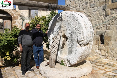 من علية الحاج شاكر العوض اتجهنا لاكمال جولتنا مع ضرورة الاشارة لوجود أكثر من علية في كفر عبوش منها علية حسين الدقة وغيرها ايضا، ولكن لم يتح لي إلا زيارة علية الحاج شاكر العوض، فمررنا بعلية أخرى وعبرنا زقاق قريب من المضافة حيث جذر البلدة التراثية والعديد من البيوت التراثية الجميلة، حيث مررنا بالعديد من البيوت التراثية المتروكة والمهجورة والتي تختلف بأنماط البناء بين العادي والبسيط والجيد، إضافة للعديد من الأبواب التراثية الخشبية التي أكل عليها الدهر وشرب، وبعضها ما زال قائما رغم التلف الذي أصابها، حتى وصلنا الساحة التي كان بها معصرة الزيتون التراثية "البد" والتي أزيلت بكل أسف، حتى وصلنا منزل صدقي الحاج عبد الرحمن الصيفي وهو بيت تراثي جميل ومتميز بنمط البناء، مكون من طابقين على نظام العقود المتصالبة وله بوابة خارجية خشبية تراثية قديمة لعب الزمان دوره بتخريبها، والبوابة تعبر من سور مرتفع وهي قوسية الأعلى مع حجر منقوش على أعلى البوابة على شكل نسر، والسور بين الساحة التي كانت بها المعصرة "البد" وبين البيت ويتميز بوجود ثلاث نوافذ بالسور وبوابة خشبية للخروج للساحة، ومن البوابة عبرنا للساحة المبلطة بالحجارة والتي تحولت الى متحف تراثي بسيط ولكن جميل، حيث حجر "البد" الذي كان يستخدم لعصر الزيتون بالطريقة التقليدية قبل دخول المكننة، مع العامود الخشبي الذي كان يستخدم بأعلى المعصرة، إضافة لبعض الأدوات التراثية مثل الشاعوب والمذراة ولوح دراسة القمح وأدوات تراثية أخرى لكن قليلة العدد، وأحد النوافذ معروض بها حجر منحوت، وبوابة المنزل الداخلية متميزة بجماليتها وفي اعلى الواجهة للطابق الثاني نافذتان متجاورتان ومحاطتان بإطار حجري ناعم وبين النافذتين عمود عليه نقش زخرفي طولي جميل، والنوافذ مستطيلة الشكل ومركب عليها حديد حماية على نمط الصناعة الحلبية حيث لا يوجد أي مادة للحم الحديد على بعضه ولا أدوات وصل وتثبيت كالبراغي، وتقوم العملية على صهر الحديد ليرتبط ببعضه بشكل فني. وأعلى الاطار الحجري العلوي حجران منقوشان أيضا بدق الحجارة.